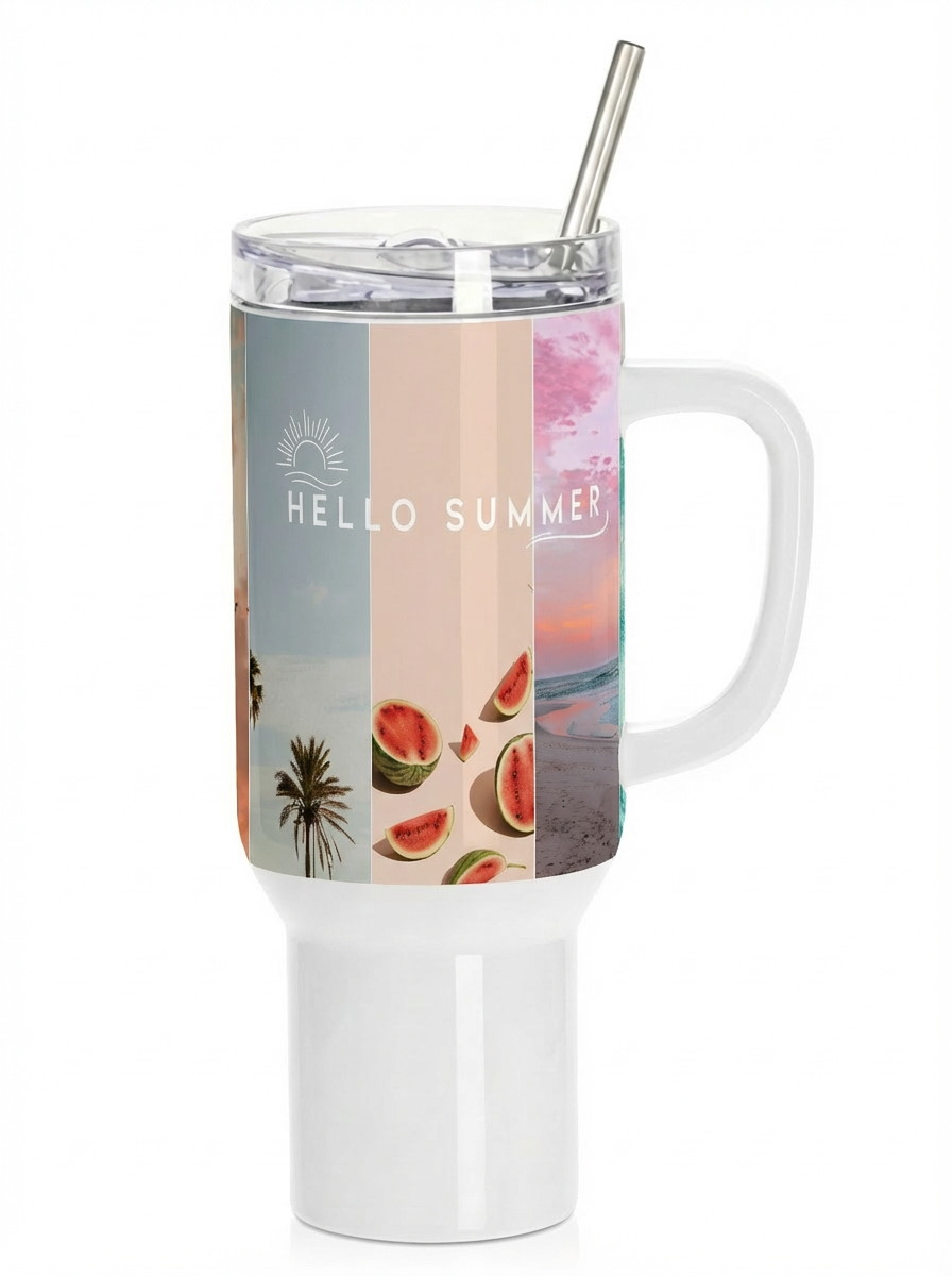Crafted from high-quality ceramic, this 40 oz tumbler offers a smooth, solid feel with a refined finish. The sublimated design is permanently infused into the surface, producing rich, vivid colors that will not peel, crack, or fade over time. Its large capacity makes it ideal for extended use, while the sturdy construction ensures reliable durability for home, office, or event settings.